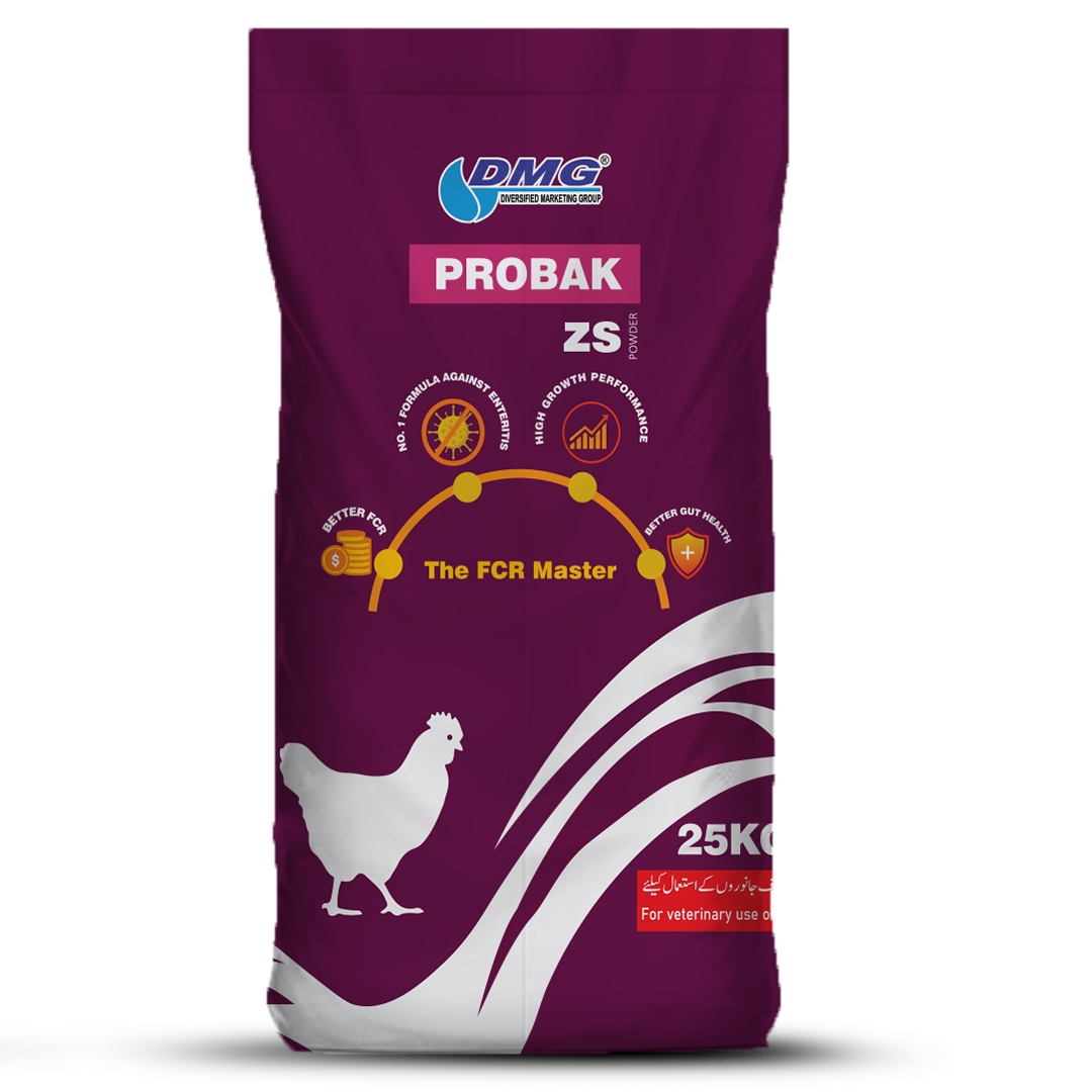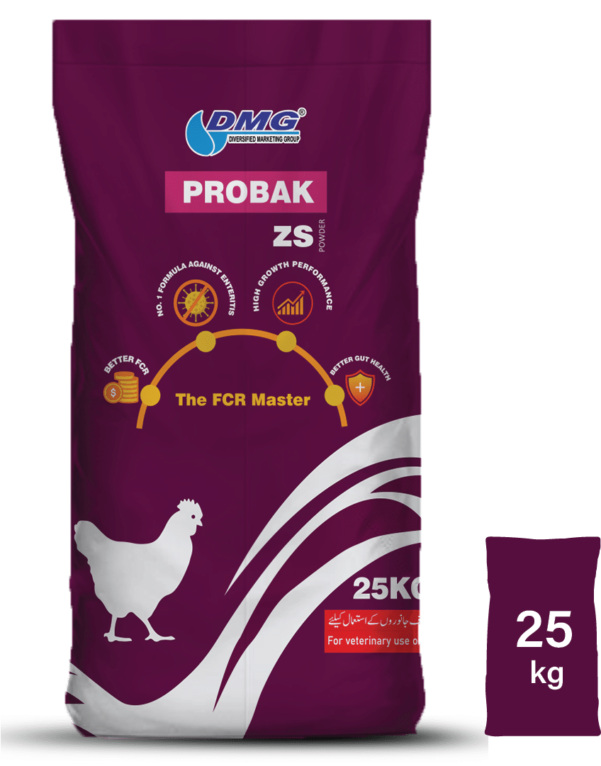 Probak ZS is strongly indicated during stress periods, poor FCR, uneven growth, inflammation of intestine, loose droppings, wet litter and other Intestinal infections due to Clostridial spp, salmonella and E. coli.