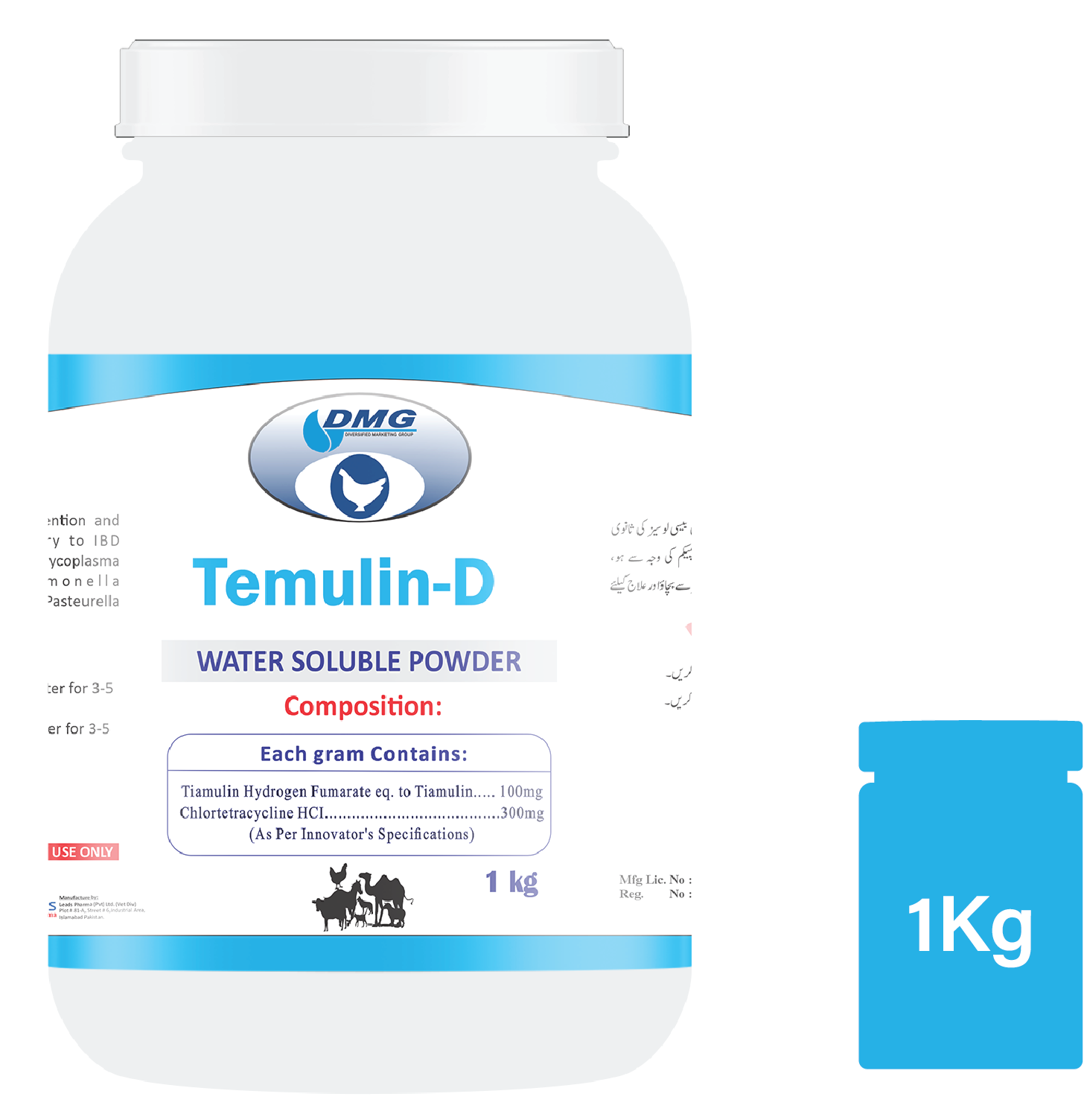 Temulin-D contains tiamulin-D hydrogen fumarate (thf), a semi-synthetic derivative of the naturally occurring antibiotic pleuromutilin, which is derived from the fungus Pleurotus mutilus. The molecule is only used in veterinary medicine and this is the reason the use in animal health has a low risk for human medicine (EMEA report, 1999; Alban et al., 2017). Further it contains Chlortetracycline (CTC) which belongs to tetracycline group of antibiotics. Both the antibiotics have synergistic effect. Temulin-D exerts its action by bonding to the subunit 50 S of the bacterial ribosome. It appears that its mechanism of action consists of the production of biochemically inactive initiation complexes that impede the elongation of the polypeptide chain. Thus, it acts as a bacteriostatic at therapeutic concentrations.